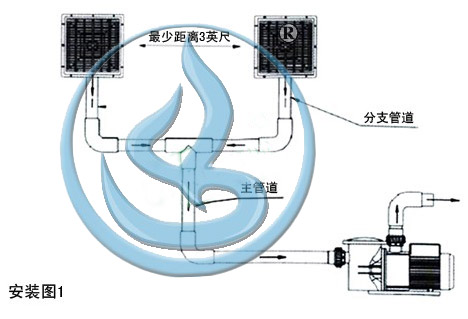 如果是面積較小的桑拿池,水療池等,可以在池底裝一個,在池壁裝一個(如圖2)。注意不可同時堵住兩個防吸排水口。