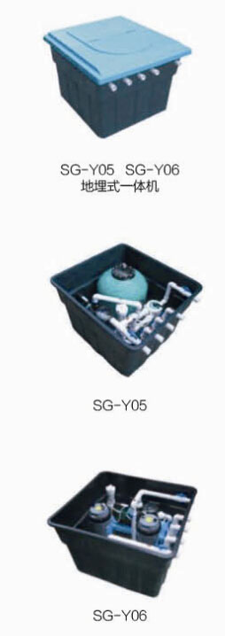 1、集完整的過濾、循環、消毒系統為一體:循環水泵、過濾器、六位多向閥、臭氧、時間控制器和接觸器等自動控制設備組成。